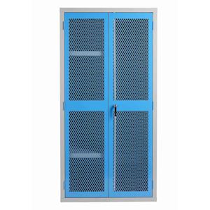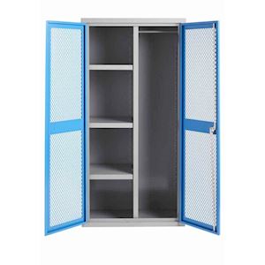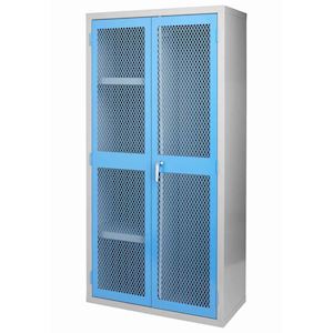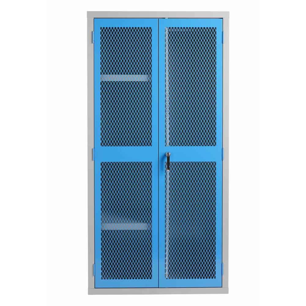 This cabinet comes with mesh vision panel doors for all round ventilation and visibility.. It is finished with an electro-statically powder coated paint finish in silver grey RAL 7001 for the frame and sky blue RAL 5015 doors.