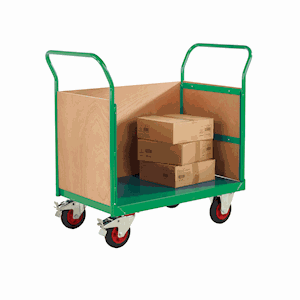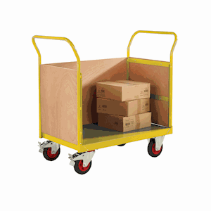 Plywood Truck 3 Sided 1050H by QMP is designed with handles and swivel castors to allow users to easily move the trolley from room to room. High quality castors make it easy to manoeuvre the trolley even when at maximum capacity. This heavy duty truck is available in two sizes and has the benefit of one open side which makes loading and offloading of goods easy.